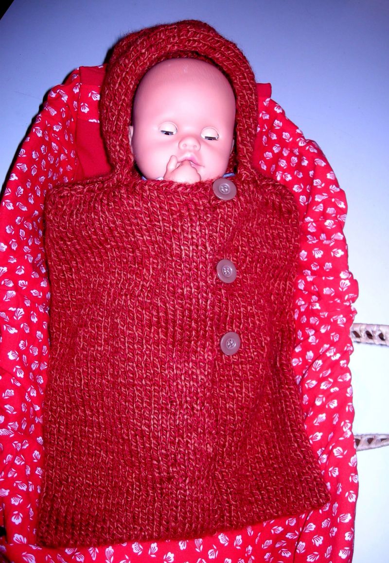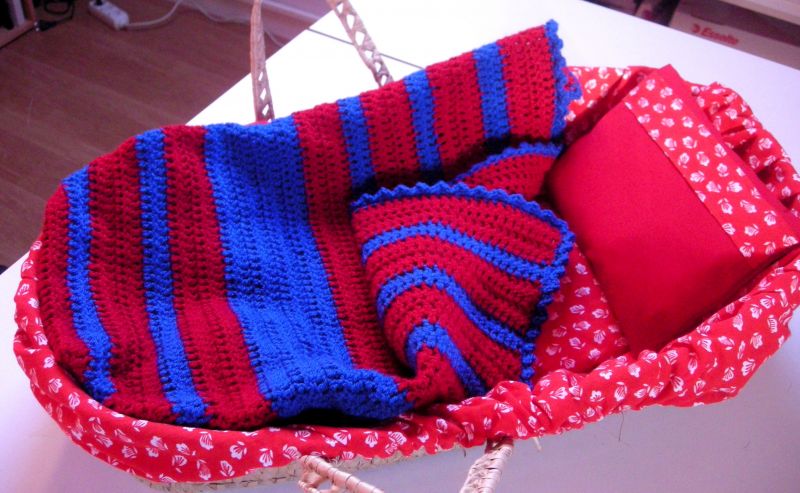 Kleindochter had van de Sint haar zo verlangde pop gekregen, wij vonden een rieten poppenreiswiegje welke we opgepimpt hebben, een gehaakt dekentje en nog een gebreid slaapzakje erbij gemaakt.
